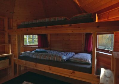 - die Kåta hat eine Grundfläche von ca. 10m2 und einen Vorraum mit ca. 3m2, an den Vorraum ist eine Trockentoilette für „Notfälle“ angebaut